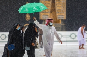 تساقطت الأمطار الغزيرةفي مكة المكرمة والمسجد الحرام، فيما واصل المعتمرون أداء مناسك العمرة