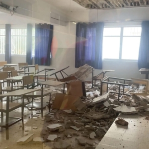 سقوط سقف احد الصفوف في المدرسة الإنجيلية الوطنية في صيدا