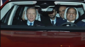 أردوغان يهدي السيسي سيارة كهربائية والأخير يقودها