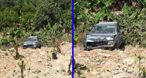 أنقذت العناية الإلهية أم و طفليها من الموت بعدما انزلقت سيارتها في نزلة الشرحبيل.