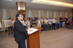 الصيدلي عمر مرجان يهنّئ الرسامة ملكة العبد على فوزها بالمركز الأول في مسابقة "أرز لبنان"