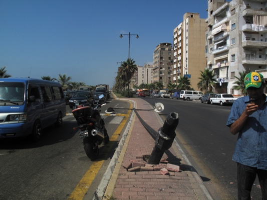 بسبب السرعة المفرطة اصطدمت سيارة من نوع نيسان بعامود للإنارة موجود وسط الجزيرة على الكورنيش البحري مقابل جامع الزعتري، الامر الذي أدى الى جرح السائق وأصابته برضوض وتحطم السيارة بشكل كبير هذا وعمد المواطنون الذين كانوا متواجدين على الكورنيش للمساعدة وتقديم الاسعافات الاولية للسائق. وعلى الاثر حضرت عناصر من الدرك وباشرت بالتحقيق في الحادث