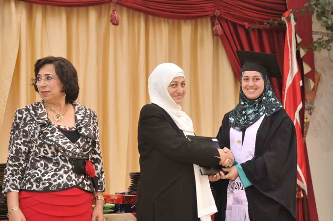 ثم قامت الحريري والمديرة الجبيلي بتوزيع الشهادات على الخريجات والجوائز التقديرية على المتفوقات منهن في فرعي الاداب والانسانيات والعلوم العامة، فيما وزع النائب علي عسيران الشهادات والجوائز على خريجات فرعي علوم الحياة والاجتماع والاقتصاد .. وتخلل الحفل اطلاق جائزة المربي المرحوم الأستاذ برهان الدين حنينة للمتفوقات، واختتم بلوحة فولكلورية لطالبات الثانوية .