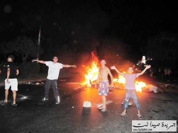 العديد من احياء المدينة، حيث اشعلوا الاطارات و وضعوا حواجز حديدية وسط الشارع تمنع مرور السيارات ونددوا بحالة الاهمال الذي تعاني منه مدينة صيدا لاسيما في تأمين الحاجات الاساسية للمواطنين ونحن في شهر فضيل وقد تبين ان المشاركين في الاحتجاج ينتمون الى الاحزاب الثلاثة الكبرى في صيدا والمتمثلة بتيار المستقبل والتنظيم الناصري والجماعة الاسلامية