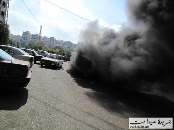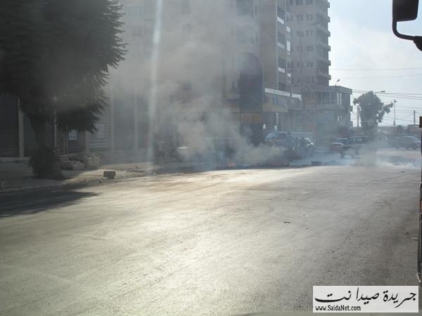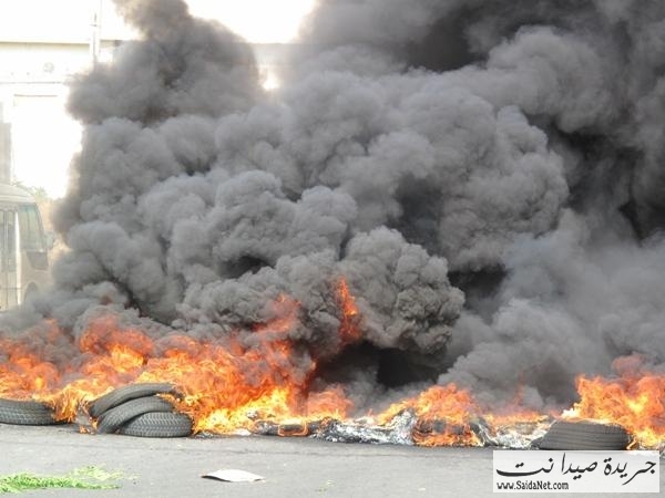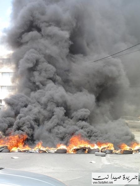 صور اشعال النار وقطع الطريق في منطقة القياعة