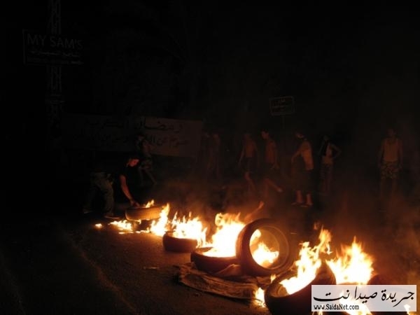 للمرة الخامسة على التوالي تقطع الطريق الدولية في صيدا احتجاجاً على قطع الكهرباء. فقد عمد مساء اليوم شباب مدينة صيدا من حي البستان الكبير إلى قطع البولفار الشرقي حارقين الإطارات وطالبوا السكان بالنزول والتضامن معهم للمطالبة بالكهرباء المقطوعة عنهم منذ عدة أيام.