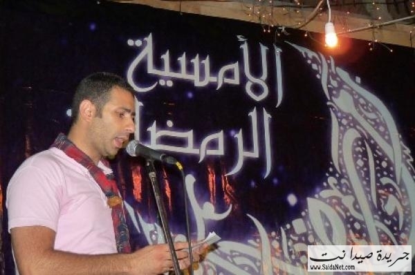 بداية آيات من القرآن الكريم رتلها المقرىء محمد العتال، ثم ترحيب من عريف الأمسية محمود العلايلي، فكلمة رئيس بلدية صيدا المهندس محمد السعودي الذي رحب فيها بالأهالي المجتمعين للإستماع للكلمة الطيبة والأناشيد والإبتهالات الدينية بمناسبة هذا الشهر الفضيل.