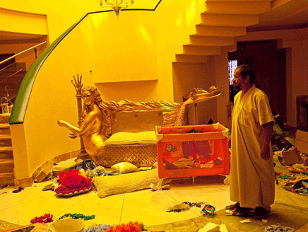 أما من الداخل، فالبيت قصر فرعوني وأكثر، لذلك فلقب "كلاوديا شيفر ليبيا" الذي كانوا يطلقونه على الفتاة التي سماها العقيد على اسم والدته لشبهها بعض الشيء بعارضة الأزياء الألمانية، هو قليل عليها، ولا يناسبها إلا لقب "كليوباترا ليبيا" على الأقل، وتؤكد ذلك صورتان اطلعت عليهما "العربية.نت" من مجموعة التقطها مصور بريطاني اسمه جاك هيل، من دون أن يقصد القصر بحد ذاته، بل كانت صور من جولة قام بها هنا وهناك في العاصمة الليبية.