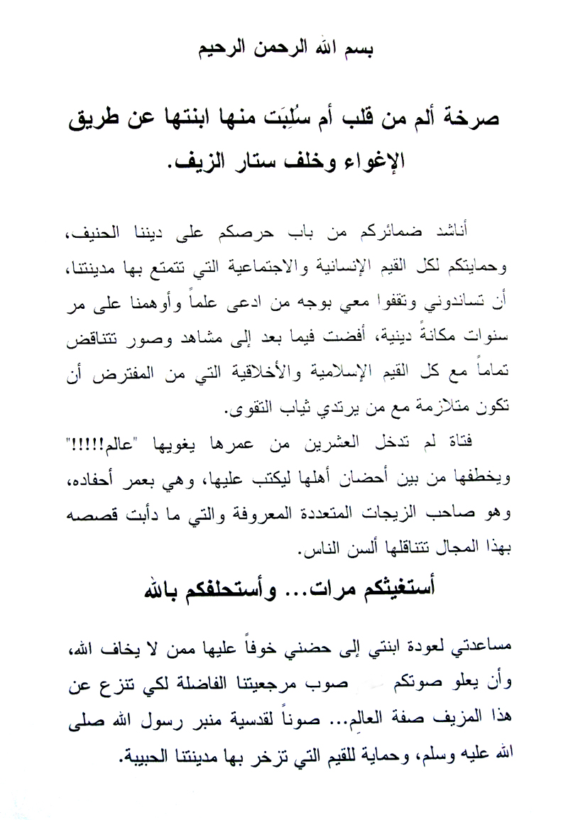 أم الفتاة التي تزوجها الشيخ غ ح تصرخ من صميم قلبها