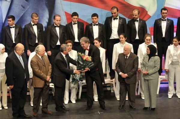 وفي الختام قدمت مديرة البهاء وداد النادري بمشاركة حمود والقطب وقبرصلي وبواب درع تكريمية بإسم المدرسة الى المايسترو تسلاكيان الذي توجه بالتحية الى النائب الحريري والى مدرسة البهاء على هذه البادرة .