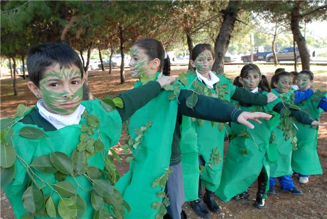ثم قدم عدد من الأطفال المشاركين ارتدو زياً يرمز الى الطبيعة الخضراء لوحة تعبيرية حول موضوع تحركهم ، وذلك بحضور رئيسة منطقة الجنوب التربوية جمال بغدادي ومديرة مدرسة البهاء وداد النادري والمشرف العام في المدرسة نبيل بواب .