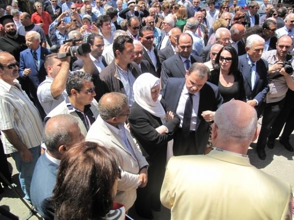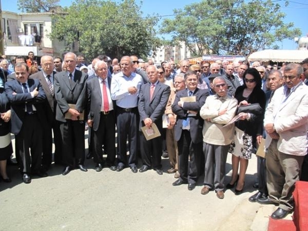 بعد ذلك قام السعودي والحريري والمحافظ أبوضاهروحمود وسعد والبزري وعائلة الفقيد بإزاحة الستارة عن لوحة الشارع التي تحمل اسم الفقيد الحاج محمد علي الشماع .