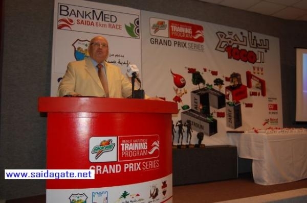 بداية النشيد الوطني اللبناني، فكلمة ترحيب ألقاها المسؤول الإعلامي في جمعية بيروت ماراثون الأستاذ حسان محي الدين، فكلمة رئيس بلدية صيدا المهندس السعودي الذي نوه بدور جمعية بيروت ماراثون في المجال الرياضي لافتا إلى أن الخطوة التي تقوم بها جمعت الناس حولها وأضحى بالإمكان القول بأن في لبنان حزبا جديدا جامعا هو حزب الرياضة يجمع اللبنانيين ولا يفرقهم .