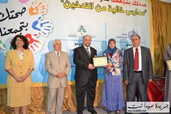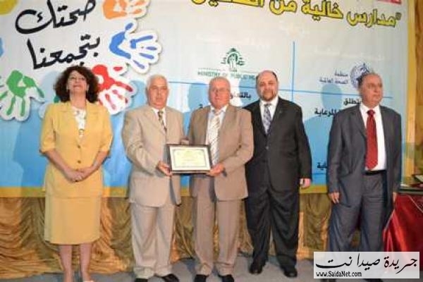 بعدها تم توزيع الدروع والشهادات التكريمية لرعاة الحفل وأعضاء لجنة التحكيم، تلاها توزيع شهادات مشاركة للمدارس التي شاركت بالمشروع وشهادات منظمة الصحة العالمية للمدارس الخالية من التدخين .