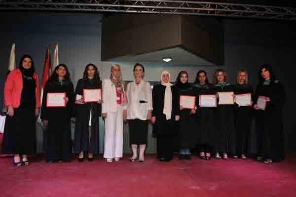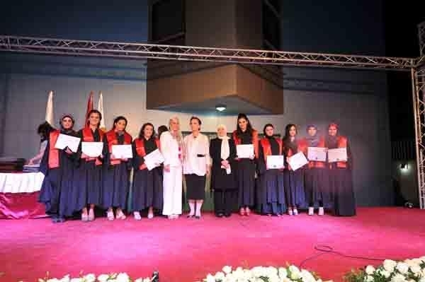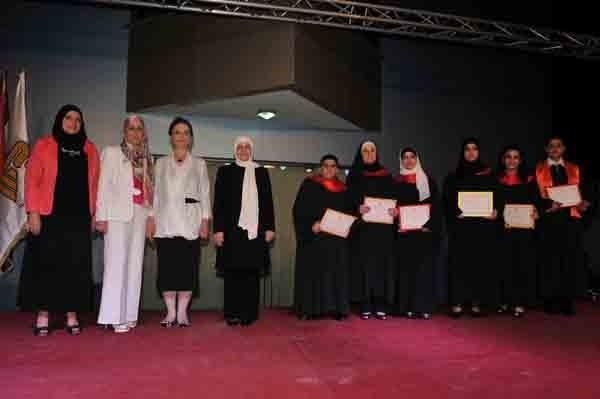 وفي الختام قامت الحريري وكلش بتوزيع الشهادات على المتخرجات والمنح والجوائز على المتفوقات منهن.