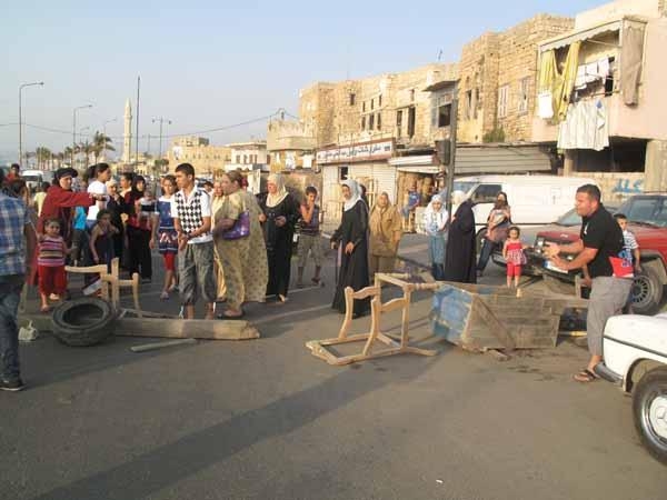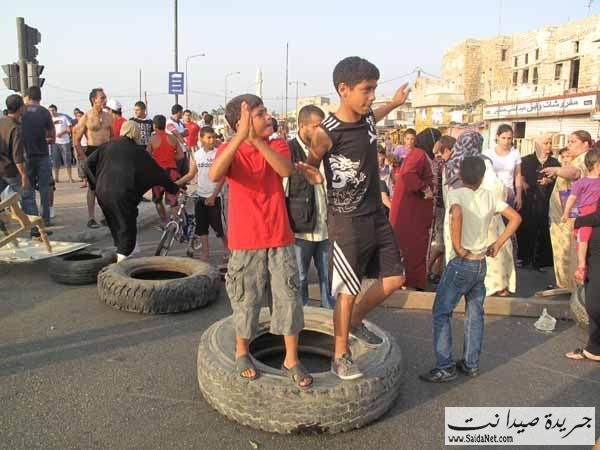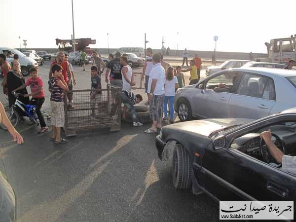 نساء وأطفال يقطعون الطريق البحرية في صيدا شاهد الصور