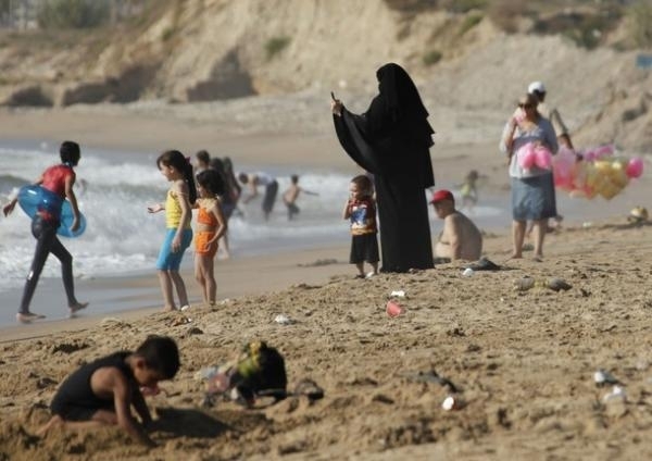 الناس و الطقس الدافئ على شاطئ في مدينة صيدا الساحلية في جنوب لبنان 24 يونيو 2012.
