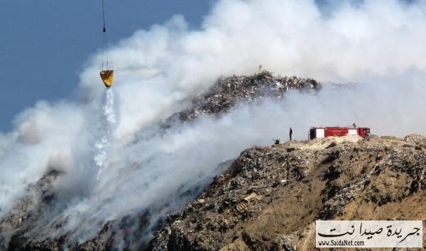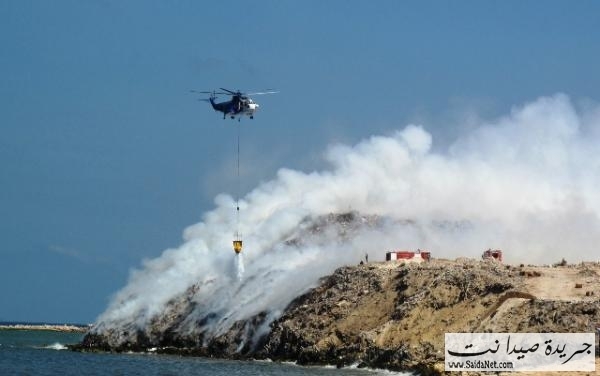 الإستعانة بطوافة الجيش لإهماد حريق جبل النفايات شاهد الصور