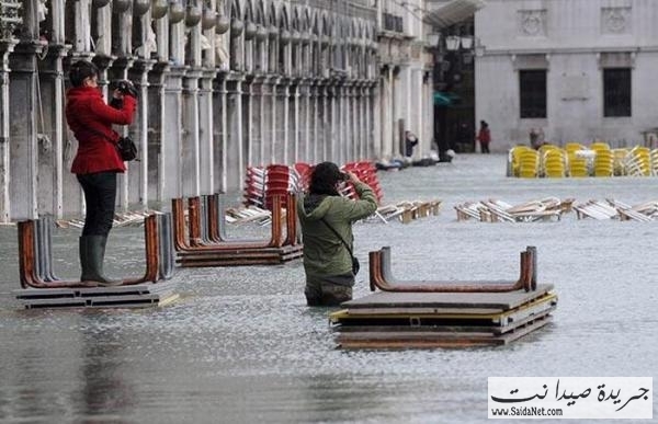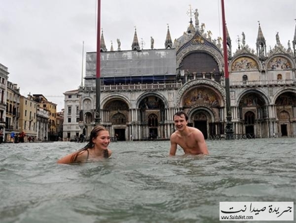 غمرت المياه نحو ثلثي مساحة مدينة البندقية، اليوم الاثنين، وسبح السائحون في ميدان "سان مارك" الشهير، في حين اجتاحت موجة من سوء الأحوال الجوية شمال إيطاليا ووسطها.
