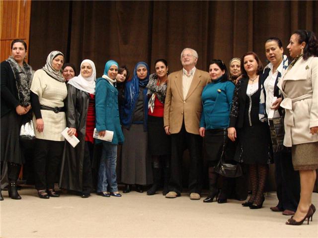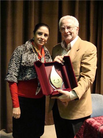 وفي ختام اللقاء قدمت السيدة إيمان سعد بإسم الهيئة النسائية الشعبية درعًا تكريميًا للدكتور إلياس الباشا.