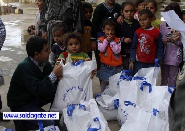 شعوراً منهم مع أهلهم السوريين النازحين الى مدينة صيدا قام وفد من طلاب ثانوية رفيق الحريري بزيارة الى مركز النازحين في كلية الامام الاوزاعي المجاورة لمدرستهم وقدموا للعائلات الموجودة داخله مساعدات عينية عبارة عن مواد غذائية قاموا بشرائها من مصروفهم اليومي .