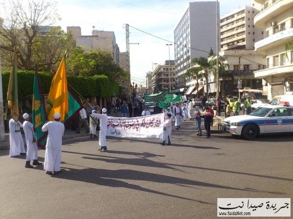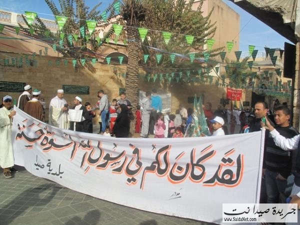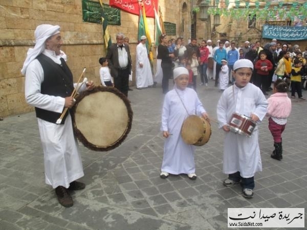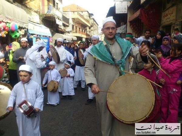 احتفلت مدينة صيدا بذكرى( مولد الرسول ص ) و اقيم احتفال في مسجد العمري الكبير و القيت الكلمات من وحي المناسبة , و شدد المفتي على ضرورة توحيد الكلمة بين اللبنانين كما اقيمت مسيرة لفرقة النوبة جالت المدينة القديمة و شوارع المدينة الكبرى حيث انطلقت من ساحة المير بالقرب من مسجد العمري الكبير و ذلك بعد اقامت العروض بحضور رئيس بلدية صيدا المهندس محمد السعودي و المفتي سوسان و اعضاء المجلس البلدي, بعدها انطلقت المسيرة باتجاه شوارع المدينة, يرافقها عدد من المواطنين و كانت فرصة لبعض المارة من التقاط الصور و رفع الرايات الاسلامية و قدمن فرقة الكشاف المسلم عروض موسيقية و قامت فرقة النوبة بعرض بالسيف و الترس و قام قائد الفرقة بغرز السيوف و السيوخ في خديه, كما وزع اصحاب المحلات الحلويات على المشاركين. و هنا بعض الصور التي التقتت من قبل جريدة صيدا نت.