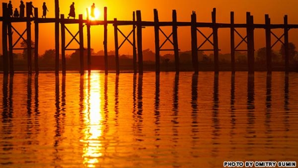 جسر "يو بين" في ميانمار، فعندما تغرب الشمس هناك، تشكل مناظر غروب خلابة في مواجهة الجسر