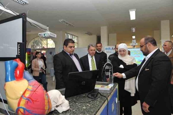وفي الختام قدم رئيس جمعية المقاصد المهندس هلال قبرصلي درعا تكريمية الى النائب الحريري التي جالت برفقة المنظمين في ارجاء المعرض واستمعوا الى شرح من موسى سويدان ( ممثل مؤسسة Educational media) حول ما يتضمنه من معروضات ووسائل تربوية تعتمد على التكنولوجيا الحديثة ومنها: الواح تفاعلية الكترونية ومختبر علوم متنقل ومقعد دراسي مزود بلوحة حاسوب لمواكبة التكنولوجيا في التربية والتعليم وامكانية مكننة المناهج التعليمية وما يهدف اليه المعرض من تدريب الاساتذة في مختلف المدارس على استخدام الالات والاجهزة الالكترونية التفاعلية في عملية التعليم وذلك من خلال ورش عمل تتمحور حول ادخال الطرائق المتطورة والحديثة الى التعليم ..