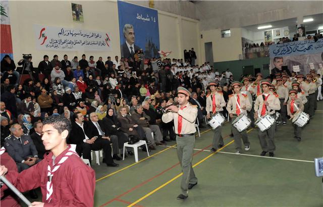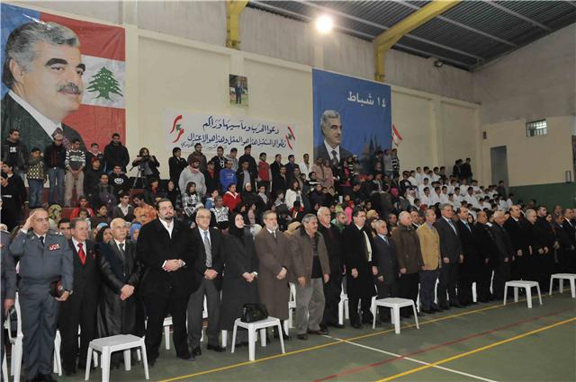 لزرعه في ضمائر اللبنانيين،كل اللبنانيين. لقد اراد البعض دفن هذا المشروع الريادي بعد استشهاده. ولكن نضالكم الصلب بقيادة حامل الامانة سعد رفيق الحريري ورفيقة درب الرئيس الشهيد بهية الحريري كان جداراً متيناً امام الكيدية السياسية ومشاريع بعض السياسيين الذين غُشيت ابصارهم بستار حقدهم وتبعيتهم ومصالحهم الآنية والخاصة. ان صلابة نضالكم حافظت على الانجازات الوطنية لرفيق الحريري ... ان شرعنة المقاومة في نيسان 1996 والاوتوسترادات والمطار ومستشفى رفيق الحريري الجامعي ومجمع الجامعة اللبنانية في الحدث هي شواهد على رؤية رفيق الحريري الاستشرافية ولبنان المستقبل الذي اراده. ومن المؤكد ايضاً ان وصول سعد رفيق الحريري الى رئاسة الحكومة هو برهان قاطع على ان نضال جماهير رفيق الحريري ومريديه اثمرت شجرة طيبة بدأ اللبنانيون جميعاً بقطف ثمارها بعد سنوات عجاف وطول معاناة، ولكن هل انتهت مسيرة رفيق الحريري لبناء لبنان الطائف، لبنان الرسالة والعيش المشترك؟ هل تحقق المشروع الوطني الاصلاحي للرئيس الشهيد رفيق الحريري؟ يجب التأكيد على ان المداميك الاساسية لهذا المشروع الوطني وضعها الرئيس الشهيد رفيق الحريري في حياته رغم عرقلة المعرقلين وكيد الكائدين وفساد المفسدين ولكن استشهاده للاسف حال دون استكماله.وصحيح ايضاً ان