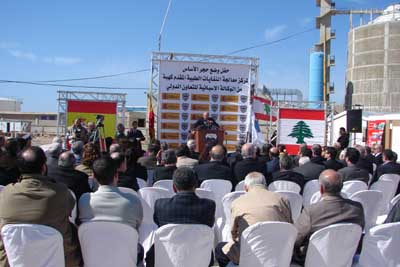 بعد ذلك أزاح السفير إسيفيدو والبزري وممثلا السنيورة والحريري والعميد خريش والحضور الستارة عن اللوحة التذكارية ثم وضعا حجر الأساس للمشروع وسط تصفيق الحضور، فكوكتيل بالمناسبة.