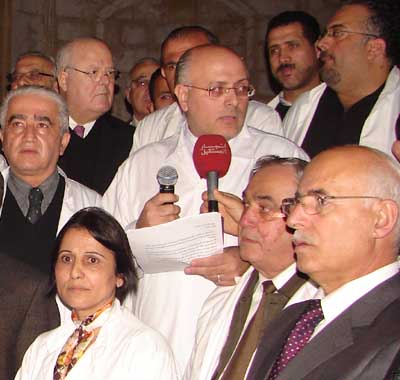 ان القطاع الصحي اللبناني الفلسطيني في صيدا وضواحيها ، اطباء وممرضين واداريين وفنيين وأطباء اسنان وصيادلة وطاقم المؤسسات الإسعافية الدولية اللبنانية والفلسطينية الرسمية منها والخاصة ، تلتقي جميعها اليوم في هذا المكان في ساحة الشهداء في صيدا لمناسبة الذكرى الخامسة لإستشهاد الرئيس رفيق الحريري كتحية ووفاء لذكراه وذكرى شهداء كل لبنان الذين استشهدوا في سبيل سيادة لبنان ووحدته واستقلاله وعروبته . وفي ذكرى تحرير صيدا من الاحتلال الاسرائيلي في 16 شباط 1985 نوجه التحية من هذا المكان الى المقاومين الأبطال والى الشهداء كل الشهداء اللبنانيين والفلسطينيين .في 14 شباط 2005 اعتقدوا بأنهم اذا اغتالوا رفيق الحريري اغتالوا معه المستقبل ، ولكن في ساحة الشهداء أنبتت شجرة الوحدة الوطنية التي تجاوزت الطوائف والمذاهب وبقيت مسيرة رفيق الحريري فينا .