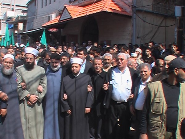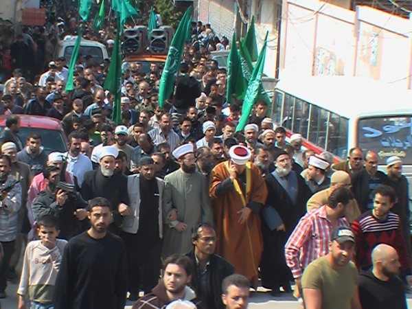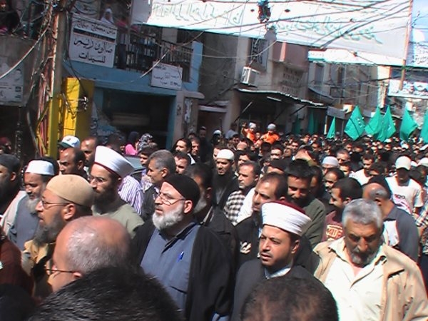 بدعوة من القوى الإسلامية في مخيم عين انطلقت مسيرة حاشدة ضمت الالاف من ابناء مخيم عين الحلوة ومجموعة من العلماء والمشايخ وقادة الفصائل الفلسطينية