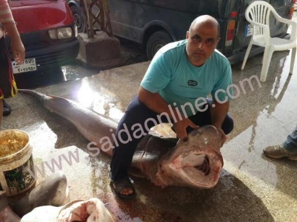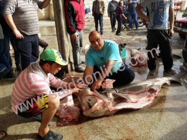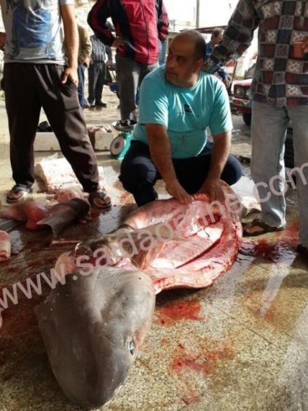 بالصور .. أسماك قرش ضخمة في شباك الصيداوي محمود وهبي