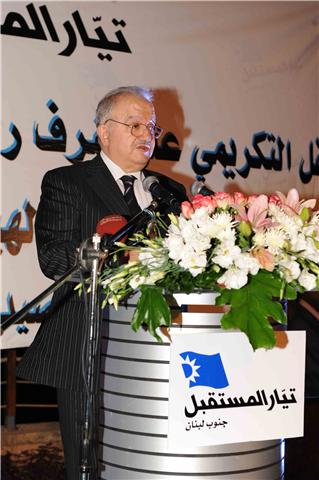 *استهل الحفل بالوقوف دقيقة صمت وقراءة الفاتحة لروح الرئيس الشهيد رفيق الحريري وأرواح شهدءا الوطن ، ثم بالنشيد الوطني اللبناني ، فكلمة ترحيب من مسؤول اعلام تيار المستقبل في الجنوب الدكتور مصطفى متبولي، ثم ألقى المهندس يوسف النقيب كلمة منسقية تيار المستقبل في الجنوب فقال: هذا اللقاء التكريمي أراده تيار المستقبل لقاءً اخوياً صادقاً يعبر عن الأُخُوَّة التي تجمعنا ودليلاً على أن مبادىء الرئيس الشهيد رفيق الحريري وَحَّدَتْ رؤيتنا الوطنية وأهدافنا الإجتماعية والإنمائية في الانتخابات البلدية في الجنوب.. إن اجتماعنا اليوم هنا في مدينة صيدا هو دليل ساطع على أن البذرة الطيبة التي زرعها الرئيس الشهيد رفيق الحريري في أرض الجنوب المناضل والمقاوم قد أينعت وأزهرت مجالس بلدية ومخاتير وهيئات اختيارية تؤمن بالمبادىء الوطنية والانمائية التي عمل الرئيس الشهيد رفيق الحريري على تحقيقها طوال حياته والذي يسير على نهجها اليوم حامل الأمانة سعد الحريري ورفيقة درب الرئيس الشهيد بهية الحريري...وان مسؤولياتكم كبيرة وهي بحجم الثقة الشعبية التي اعطاكم اياها الناخبون ... ونحن على ثقة تامة بأنكم أهلٌ لها... وبأنكم قادرون أيضاً على الوفاء بالوعود التي وردت في برنامجكم الانتخابي وعلى اطلاق عجلة الإنماء في بلداتكم وقراكم ...كونوا على ثقة بأنكم لن تكونوا وحدكم في مسيرة الإنماء فإن تيار المستقبل سوف يؤازركم في مشاريعكم الإنمائية إذا كنتم ترغبون بذلك. هذه المؤازرة سوف تكون من خلال تنظيم دورات تثقيفية وإدارية حول كيفية إدارة المجلس البلدي والتنظيم الإداري وطرق تسهيل معاملات المواطنين وإدارة المشاريع الإنمائية. ونحن نتمنى عليكم أيضاً تعزيز أواصر الصداقة والعلاقات بين مجالسكم البلدية والقيام بمشاريع مشتركة وهذا من شأنه تبادل الخبرات بينكم مما سينعكس ايجاباً على حياة المواطن وعلى تنمية بلداتكم وقراكم المحرومة منذ زمن بعيد. ان الآمال معقودة عليكم لرفع الحرمان عن بلداتكم وقراكم ولإطلاق مسيرة التنمية فيها. وكما تعلمون ان الإنماء هو السبيل الوحيد لمساعدة السكان في الجنوب الصامد على البقاء في أرضهم... أرض الآباء والأجداد ... رمز العنفوان والكرامة والإباء. هذه الأرض التي روتها دماء شهدائكم دفاعاً عنها ضد الاحتلال الاسرائيلي الغاصب والتي ساهمت بتحرير الجنوب من رجس الاحتلال الاسرائيلي. كما ان صمودكم في الجنوب سوف يساعد حتماً على تحرير مزارع شبعا وتلال كفرشوبا والقسم اللبناني من قرية الغجر... ختاماً نرجو من الله سبحانه وتعالى بأن يوفقكم في مهماتكم البلدية والاختيارية وبأن تكونوا رواداً في الإنماء البلدي من أجل تطوير مدنكم وبلداتكم وقراكم. وهكذا تساهمون في بناء لبنان الوطن والعيش المشترك ... لبنان دولة المؤسسات... لبنان الذي حلم به رفيق الحريري والذي استشهد من اجله.