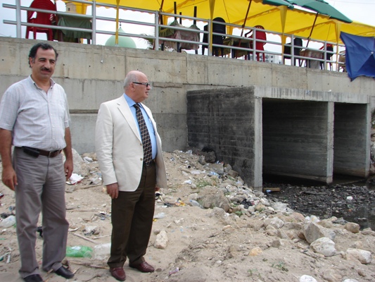 جاء ذلك خلال جولة تفقدية قام بها المهندس السعودي إلى قناة الصرف الصحي في محلة القملة(القناة الأكبر للمياه الآسنة التي تصب في البحر) بعد إنجاز أعمال ربطها بشبكة المجاري الرئيسية التي تصل إلى محطة الضخ في سينيق، وبالتالي توقف جريان المياه الآسنة فيها نحو البحر.