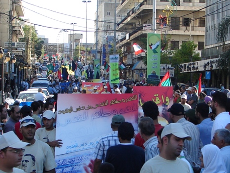 عاش يوم القدس العالمي ، عاش التلاحم اللبناني – الفلسطيني، المقاومة في فلسطين والعراق ولبنان وجدت لتنتصر ... وستنتصر