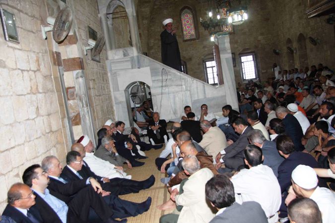 في المسجد العمري الكبير في صيدا القديمة، أم مفتي صيدا وأقضيتها الشيخ سليم سوسان المصلين لصلاة العيد بحضور : الرئيس فؤاد السنيورة ، وامين عام تيار المستقبل احمد الحريري ومنسق عام التيار في الجنوب الدكتور ناصر حمود ورئيس بلدية صيدا المهندس محمد السعودي ، والرئيس السابق لبلدية صيدا الدكتور عبد الرحمن البزري وعضو شورى الجماعة الاسلامية في لبنان الدكتور علي الشيخ عمار والمسؤول السياسي للجماعة في الجنوب بسام حمود والمسؤول التنظيمي حسن ابو زيد والمهندس يوسف النقيب والشيخ الدكتور صلاح الدين أرقة دان ، وآمر فصيلة درك صيدا الرائد سامي عثمان وفاعليات سياسية وروحية واهلية وممثلين عن قوى فلسطينية .