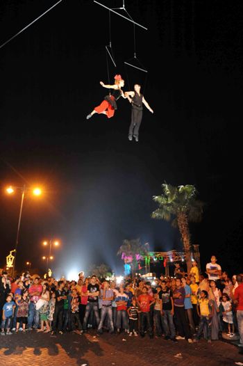 وتدلى بعض افراد الفريق الفرنسي Motus Modules بواسطة الحبال في الهواء على ارتفاع عدة امتار حيث أدوا رقصات تعبيرية على وقع الموسيقى الصاخبة ..