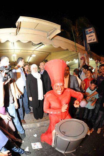 افتتح عرس المدينة برعاية وحضور النائب بهية الحريري ومشاركة الرئيس فؤاد السنيورة ورئيس بلدية صيدا المهندس محمد السعودي وعدد من اعضاء المجلس البلدي وممثلون عن تيار المستقبل وحشد من الشخصيات والمدعوين ، ورئيسة جمعية نبض المشرفة على العروض وفاء الخشن، حيث قامت الحريري والحضور بداية بجولة على المعرض الحرفي التراثي وسوق الطيب ، ثم استعرضت واياهم العروض التي قدمتها الفرق الفرنسية واللبنانية المشاركة التي تضم أكثر من خمسين فنانا ومؤديا ، مثل Remue-Ménage créeو Motus Modules و " سيبال" وغيرها ، حيث تضمنت هذه العروض : بالونات مجسمة طائرة اتخذت اشكالا مختلفة ، فسبحت اسماك طائرة في فضاء قلعة البحر ، وحلق منطاد بيضاوي على شكل طائر اسطوري التصقت به فنانة فرنسية لوحت بجناحين عملاقين ، وارتفعت في اجواء المكان مجسمات لكائنات مائية .. وسار وسط الحشود أشخاص يرتدوزن بزات مضيئة أشبه بتلك التي ترتديها المخلوقات الفضائية ، وأدت شخصيات أخرى العابا بهوانية وقفزات في الهواء بواسطة قوائم اصطناعية طويلة .. وتنقل عدد من المهرجين الذي لونوا وجوههم وايديهم بين الحضور وداخل المقاهي وقاموا بحركات مضحكة استقطبت انتباه واهتمام الأطفال والأولاد وقاموا بحركات ايمائية وعزف الموسيقى امام الجمهور .. فيما قدمت فرقة قارعي الطبول عروضا ايقاعية راقصة على طول البولفار والكورنيش البحري حي اقيم المهرجان.