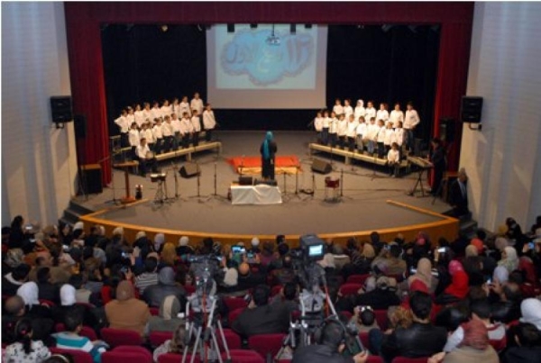 وقدمت فرقة المادحين للأخوين مزرزع مدائح نبوية وتواشيح من وحي المناسبة ولوحات تعبيرية تراثية وصوفية " لوحة التنورة ". وعرضت على شاشة في خلفية المسرح بطاقات معايدة ورسومات من اعداد اساتذة الفنون في المدارس المشاركة .