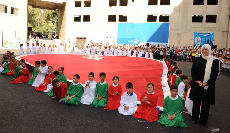 وتوسط الساحة مجسم لقلب كبير تتوسطه صورة الرئيس الشهيد رفيق الحريري فيما رفعت صوره على جانبي الساحة .. وعلى وقع الموسيقى دخل عدد من الاطفال بلباس الوان العلم اللبناني تحلقوا حول مجسم القلب رافعين الاعلام اللبنانية ليتلو أحدهم بعد ذلك وهو يمتطي حصانا رسالة موجهة لروح الرئيس الشهيد جدد فيها باسم طلاب المدرسة السير على خطاه ونهجه .