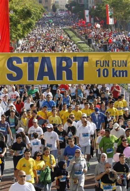 انطلق ماراتون "بلوم بيروت" السابعة من صباح اليوم تحت شعار "فكر ما بقدر - اكيد بقدر"، بحضور رسمي كبير تقدمه رئيس الحكومة سعد الحريري، وزيرا الداخلية والبلديات والشباب والرياضة زياد بارود وعلي العبدالله، النواب: عمار حوري، ستريدا جعجع، غسان مخيبر، خالد زهرمان، آلان عون وسيمون ابي رميا، سفراء الدول الاوروبية والعربية، الوزيرة السابقة ليلى الصلح حمادة التي اعطت اشارة سباق الامهات، قائد قوات الطوارىء الدولية البرتو اسارتا ورئيسة جمعية ماراتون بيروت مي الخليل.