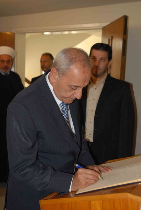 ولدى مغادرته دار الافتاء دوّن الرئيس بري في سجل المعزين:" يوم العيد افتقد لبنان والجنوب خاصة قمراً من أقماره " .