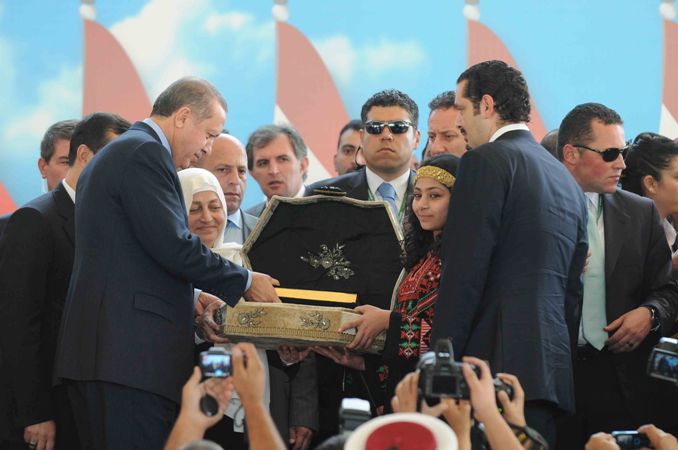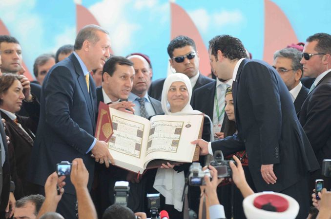 قدمت النائب بهية الحريري نسخة من القرآن الكريم للرئيس أردوغان الذي قدم لها بدوره نسخة نادرة من القرآن .كما حضرت عائلة الطفل الفلسطيني(من مواليد مخيم عين الحلوة) ويبلغ عمره 5 أشهر وعرفت النائب بهية الحريري أردوغان به وبأن والد الطفل اطلق عليه اسم رجب طيب اردوغان تيمنا بإسم رئيس الوزراء التركي حيث ولد بعد ثلاثة أيام من المجزرة الصهيونية بحق أسطول الحرية التركي لكسر حصار غزة. فحمل أردوغان الطفل وحضنه وقبله ..كما قدمت مدرسة البهاء لأردوغان مجسم لأسطول الحرية تحية من صيدا الى شهداء اسطول الحرية