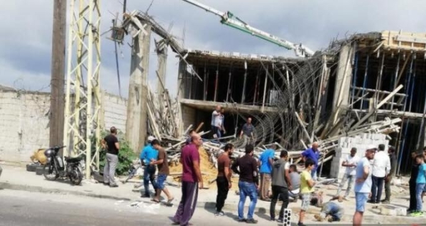 ادى انهيار سقف مبنى قيد الانشاء في منطقة الحسبة جنوبي صيدا الى وقوع اربعة جرحى.