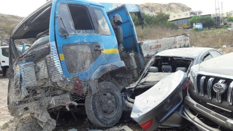 شاحنة إجتاحت معرضا للسيارات في المصيلح وإصابة سائقها