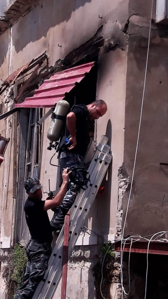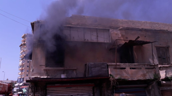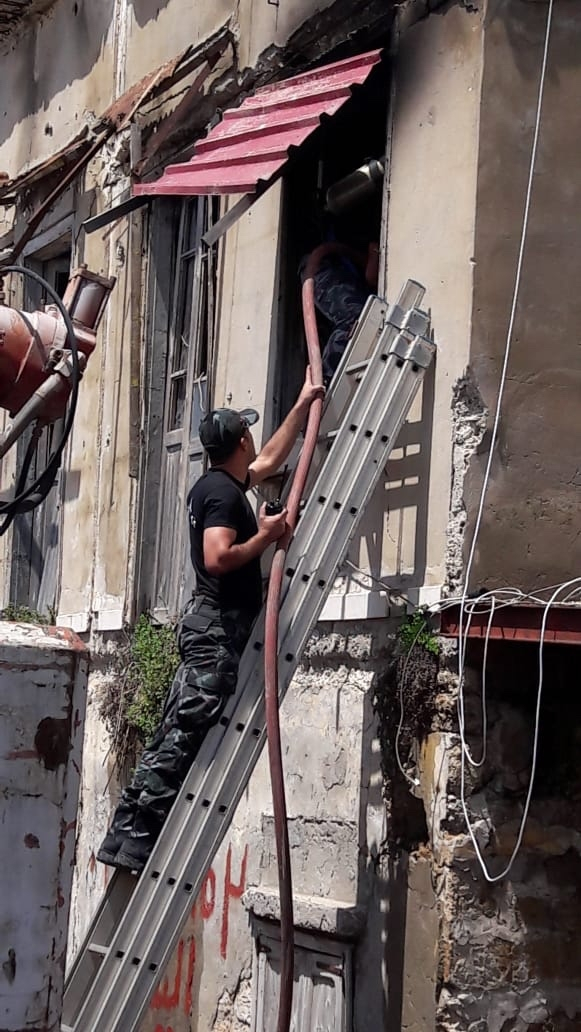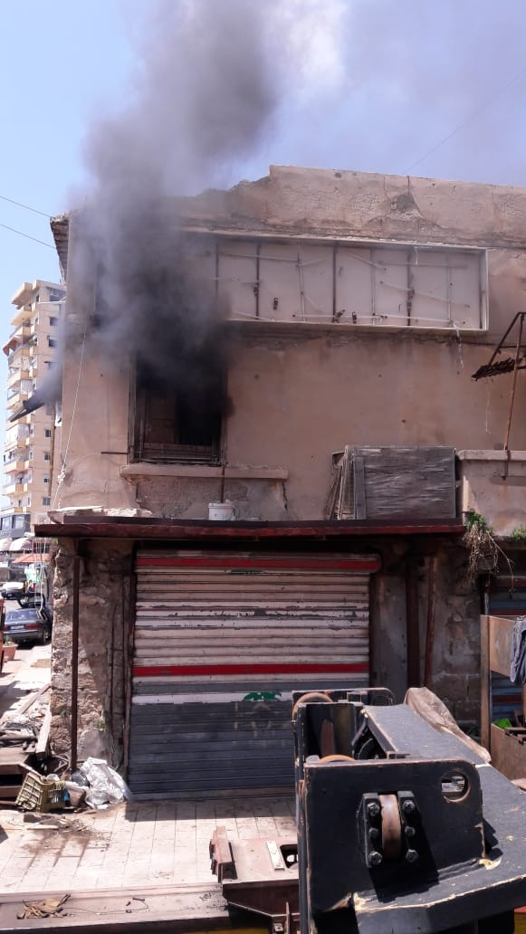 اخماد حريق دواليب واخشاب داخل منزل فوق محل النقيب للدواليب اول طلعة رجال الاربعين