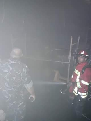 اخماد حريق مستودع ادوية طبية تابعة لعيادة الانروا خلف مستشفى الهمشري مباشرة