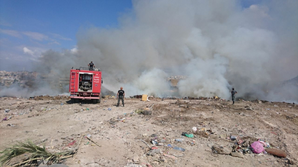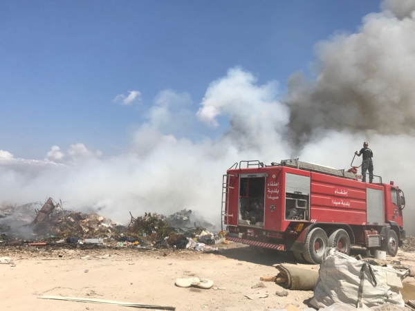 وكان الحريق في منطقة الحاجز المائية المردومة عندما اشتعلت النيران في ردميات ممزوجة بنفايات واطارات مطاطية حيث ارتفعت سحب الدخان الاسود في اجواء المنطقة. قبل ان تعمل فرق الاطفاء وسيارات فوج اطفاء بلدية صيدا على تطويق النيران والسيطرة على الحريق .