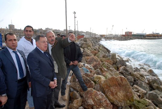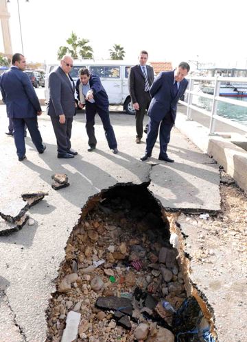 تفقد الرئيس فؤاد السنيورة الأضرار التي تسببت بها العاصفة على طول الواجهة البحرية لمدينة صيدا يرافقه رئيس بلدية صيدا المهندس محمد السعودي ومدير عام النقل عبد الحفيظ القيسي موفدا من الوزير غازي العريضي حيث اطلعوا عن قرب على آثار العاصفة وما خلفته من اضرار على الشاطىء والكورنيش البحري والمرفأ التجاري وميناء الصيادين وبعض ورش صناعة المراكب واستمعوا من الصيادين والعاملين في قطاع البحر الى مطالبهم فيما يتعلق بالتعويض عن هذه الأضرار أو اعادة النظر بالوضع الحالي للمرفأ والميناء لجهة تحصينه من العواصف لتلافي تكرار ما حصل .